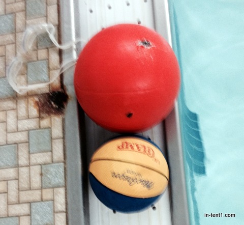 Leaky goggles are no fun, but I was able to do the workout. It was a heck of a workout. I was exhausted when I finished. My legs and ankles were tired from: 8 x 25 kicks on back w/ arms in tight streamline @ :15 rest (odds = easy, evens = FAST). I am making some progress: 1. my head wasn’t cranked up like an otter, 2. I didn’t drift into any other swimmers AND, 3. I discovered two broken ceiling tiles just before the wall, one at each end of the pool. So, still no flags, but an effective proxy.