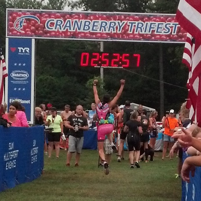 Cranberry has a time trial start, so it was a pretty calm start. I focused on a strong engaged core and good rotation from the start. As I hit the first buoy, I knew that my fears of my hip flexors being an issue were unfounded for the day. I was relieved, happy, grateful, and focused on swimming as straight a line as possible between buoys. It was a actually a pretty great swim.