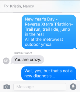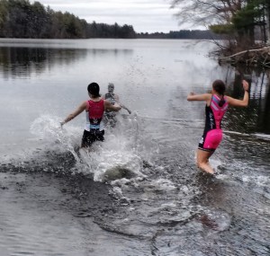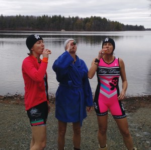 For Kristin, it’s The Year of Dirt – gravel rides, Xterras, CX, plus the full 3 Day PMC. For Nancy, it’s The Year of Epic Cycling, including theBattenkill & PMC. For me, it’s The Year to Bring it All Together – all 3 disciplines, better nutrition & injury prevention. This terrible idea brought it all together and the plunge into the icy, cold water would seal the deal!
