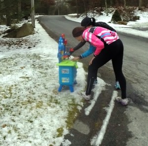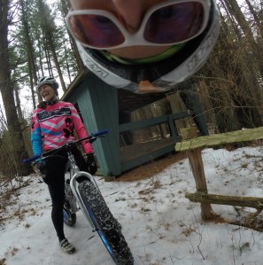 As usual in New England, the weather necessitated plan modifications. Recon on the course the day before, revealed too much ice on the trails to make the run leg hit our minimum fun level – so it would be a road run. The crunchy trails were fine on mountain bike, so Fatbikes would be perfect.